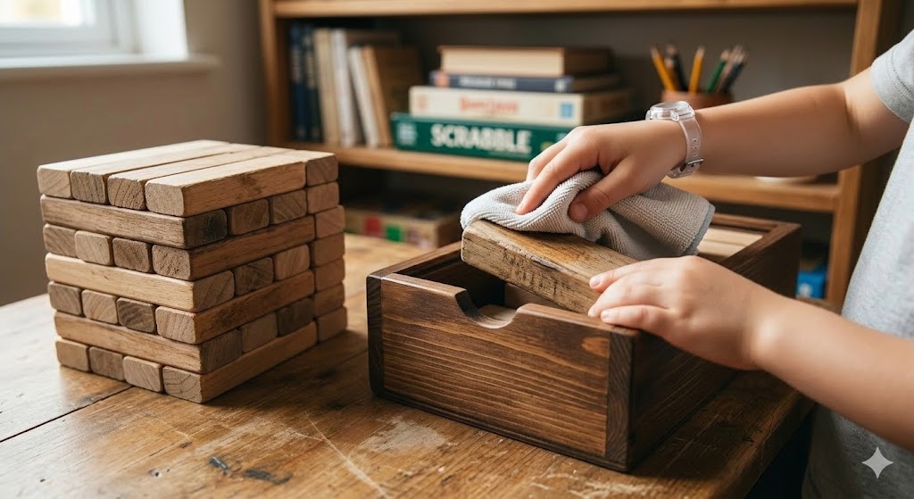 Jotta Jenga-kokemus säilyisi hyvänä, palikoista on pidettävä huolta. Puu on elävä materiaali, joka reagoi kosteuteen ja lämpötilan vaihteluihin. Jos palikat kastuvat tai niitä säilytetään kosteassa, ne voivat turvota, jolloin niiden liukuvuus kärsii ja peli muuttuu epäreiluksi. On suositeltavaa pyyhkiä palikat säännöllisesti kuivalla liinalla ja säilyttää niitä alkuperäisessä pakkauksessaan tai tukevassa pussissa. Jos palikat tuntuvat ajan myötä liian nihkeiltä, joitakin vinkkejä on annettu hyvin hienon hiekkapaperin käytöstä, mutta alkuperäisen pinnan säilyttäminen on yleensä paras vaihtoehto kitkan hallinnan kannalta.